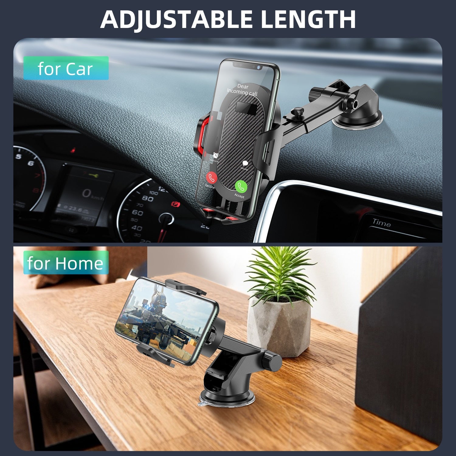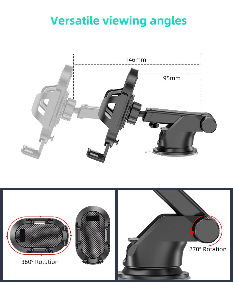 - The sponge cushion on the 2-side clamps, and the rubber pad on the bottom legs make this phone car mount anti-slide and wobble-free. The bottom bracket is made of silicone material which is shockproof and stable. Foldable holding feet allow hassle-free charging for your cellphone