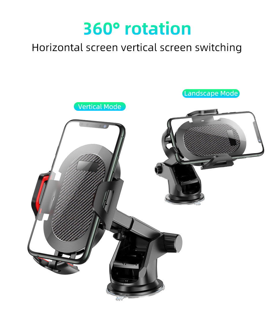 - Press button on the right side of the car dashboard phone holder to open the clamps, place your phone in it with the arms open and press the arms on both side to clamp mobile phone again.